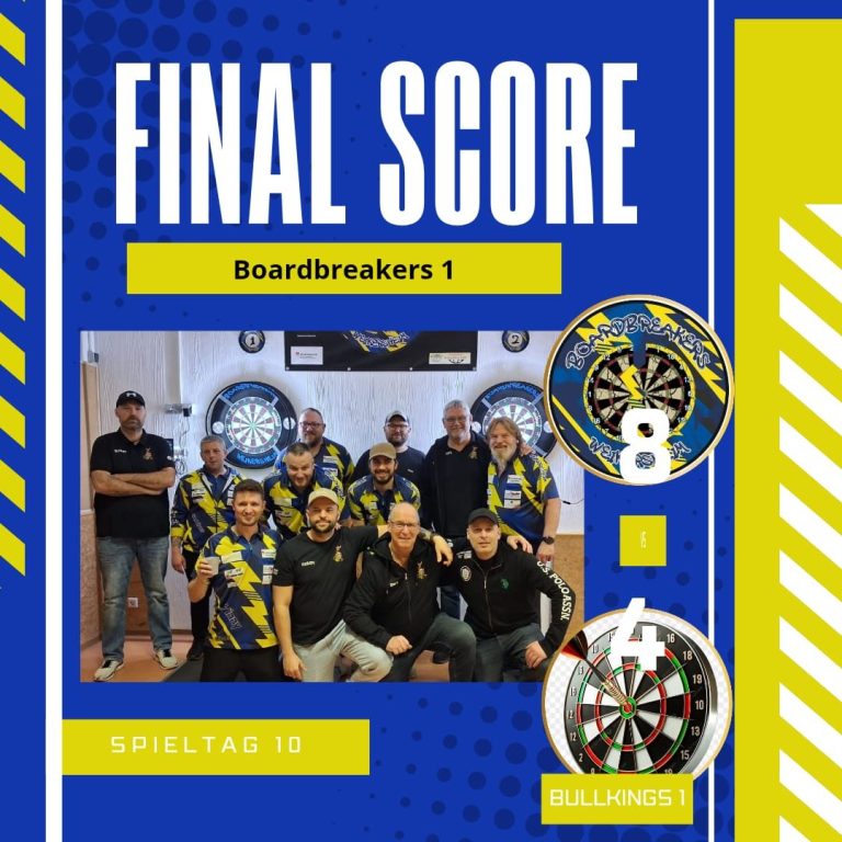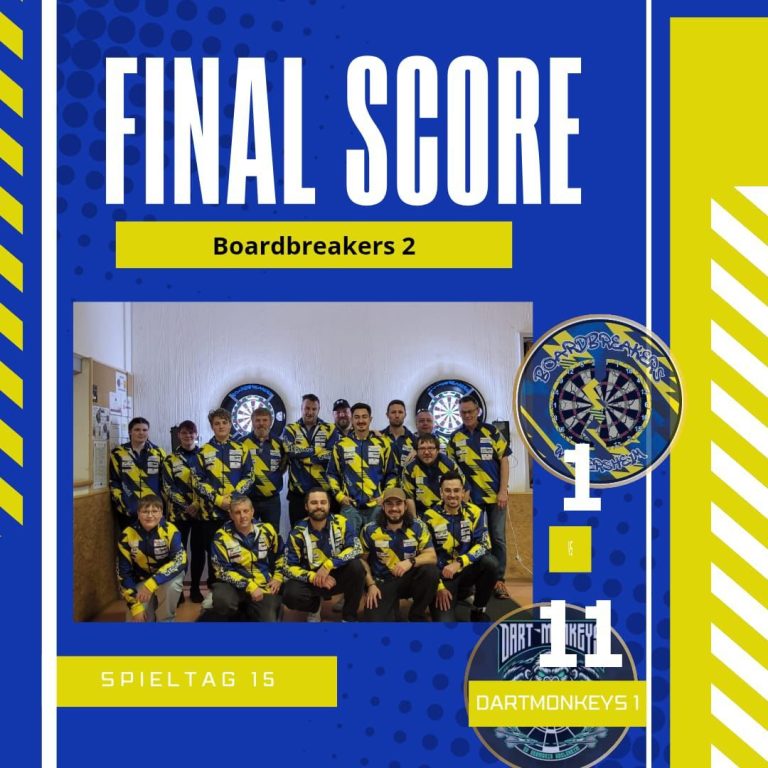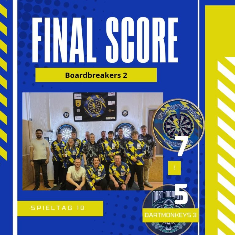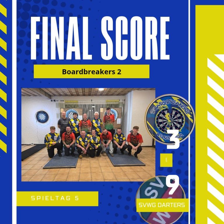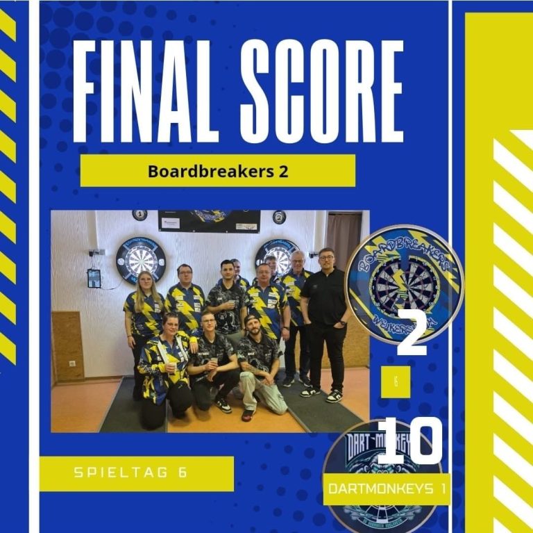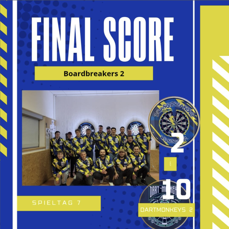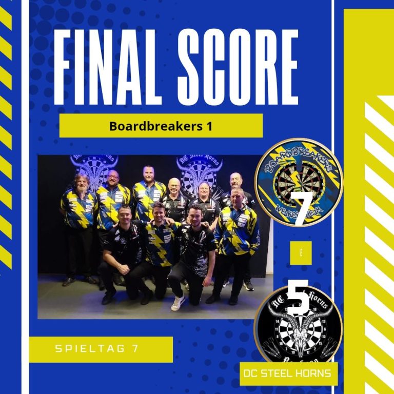 Heiko und Zündy war dieser allerdings nicht genug und mit einem saustarken 59er-Average über 5 Legs konnten sie für uns den Spieltagssieg eintüten. Nach der Niederlage von Jan und Vince stand das Endergebnis von 7:5 für die Boardbreakers.