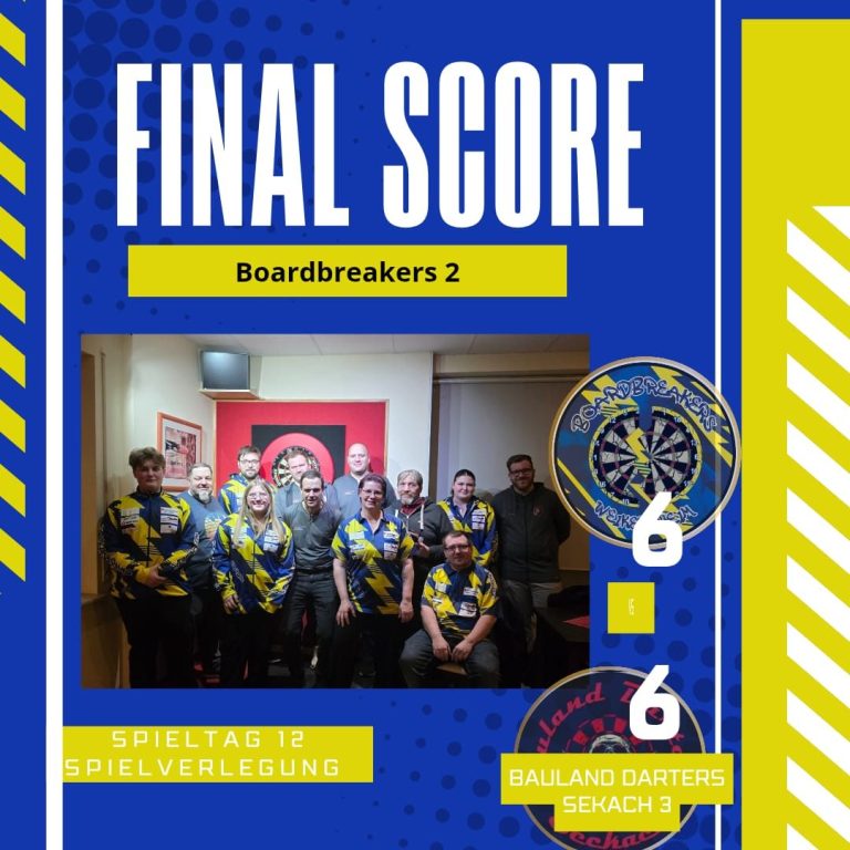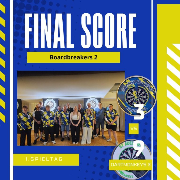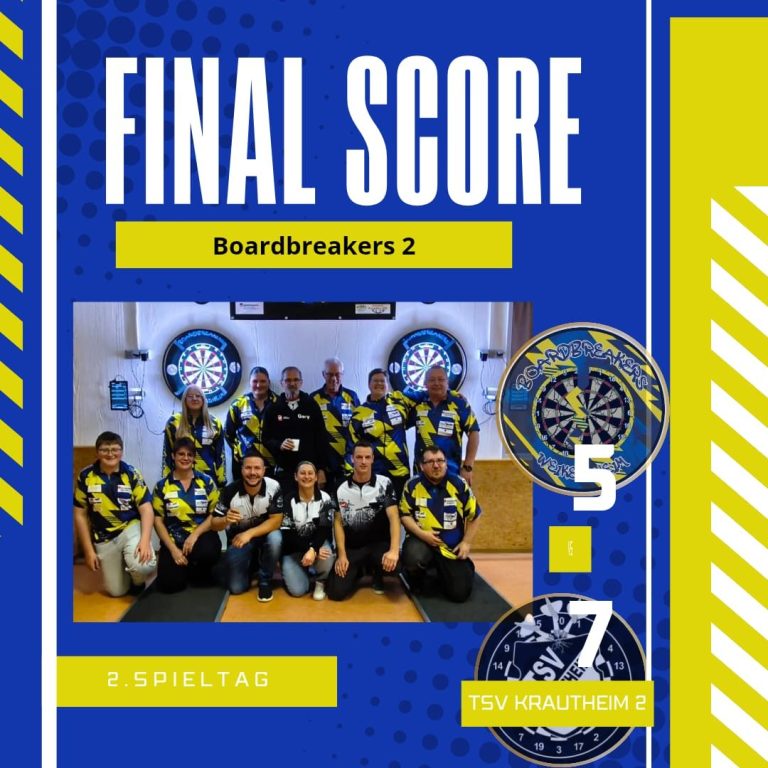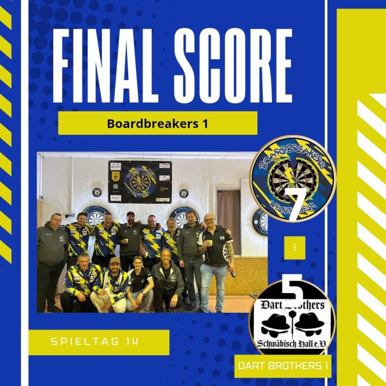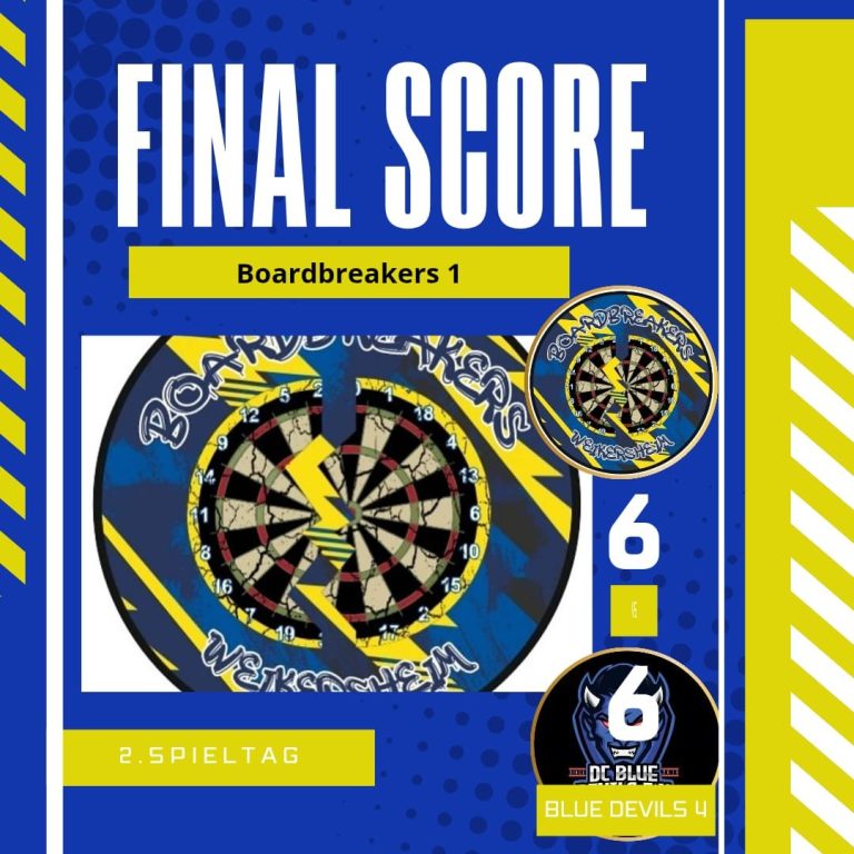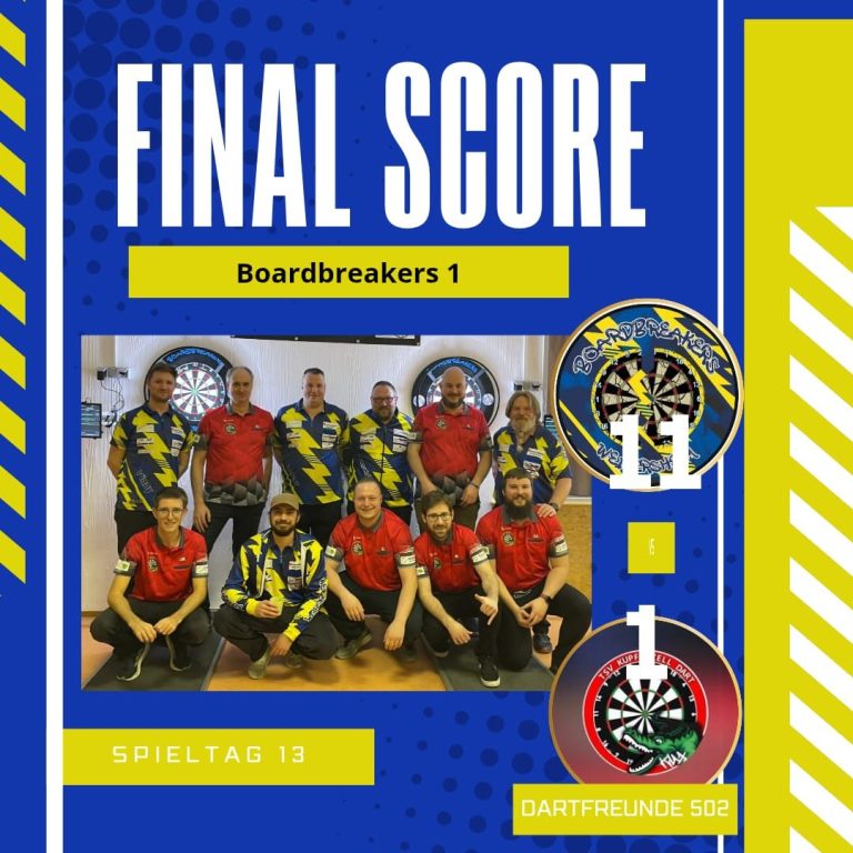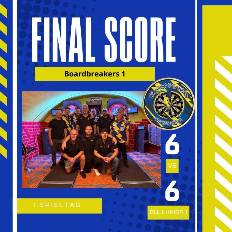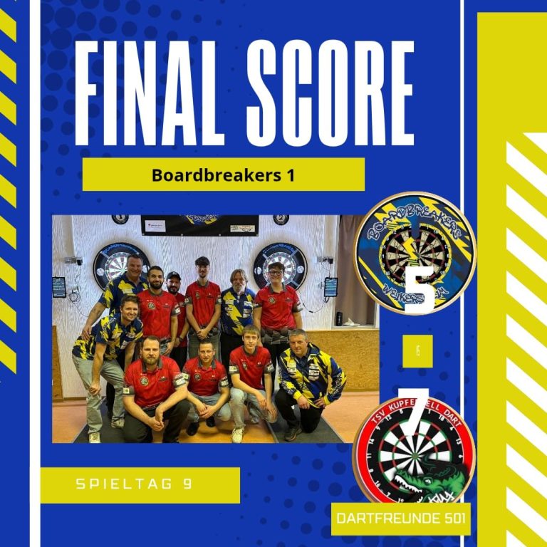 Heiko und Zündy war dieser allerdings nicht genug und mit einem saustarken 59er-Average über 5 Legs konnten sie für uns den Spieltagssieg eintüten. Nach der Niederlage von Jan und Vince stand das Endergebnis von 7:5 für die Boardbreakers.
