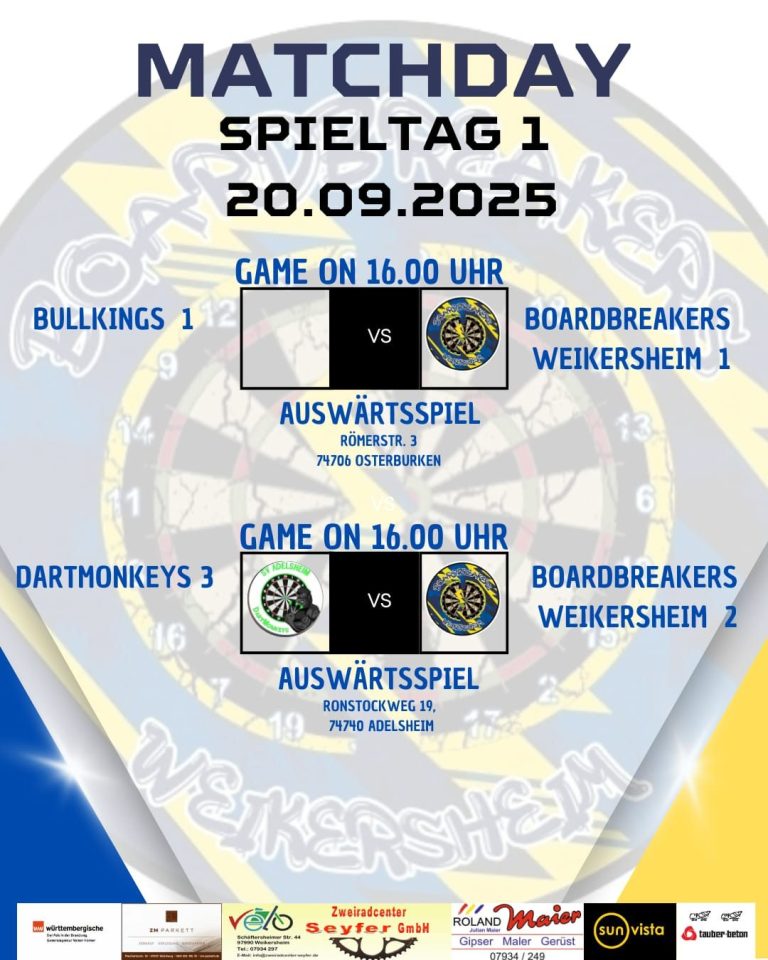Am Samstag, den 20.09.25 hatten wir unser erstes Spiel in unserer 1. Saison gegen die Dartmonkeys 3 aus Adelsheim. In den ersten 4 Einzeln konnten wir leider keine Punkte für uns gewinnen. Obwohl Fabio, Uwe, Marcel und Bernd starke Spiele gespielt hatten. Die Dartmonkeys lagen danach direkt mit 4:0 vorne. Im ersten Doppel bei Fabio und Yvonne konnte, trotz eines guten Spieles, leider kein Punkt geholt werden. Beim Doppel von Uwe und Janine ging es spannend zu. Am Ende haben wir auch dies leider 3:2 verloren. Damit stand es nach der hälfte der Spiele 6:0 für die Dartmonkeys.