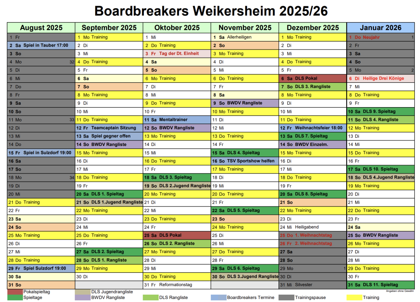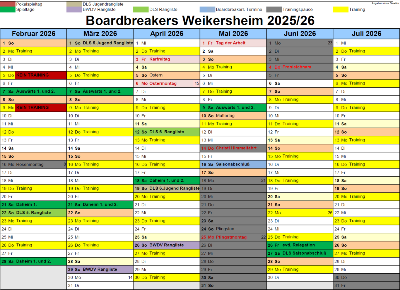 Termine Saison 2025/2026