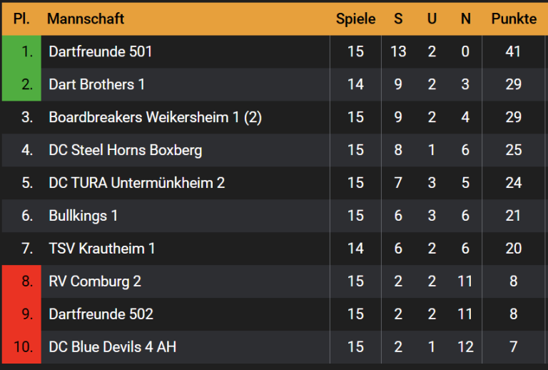 Sa. 21.02.26 16:00 Boardbreakers 1 11:1 Dartfreunde 502